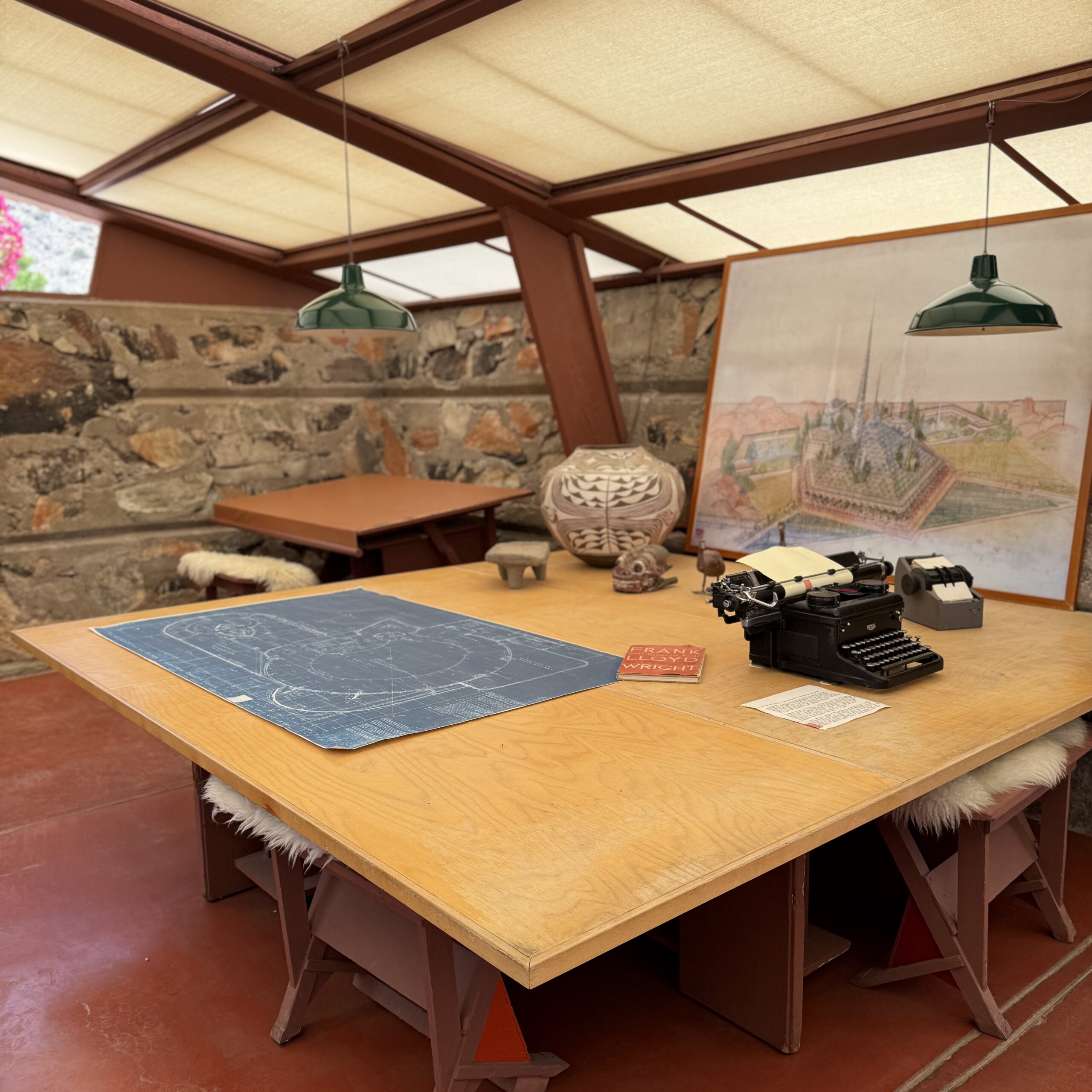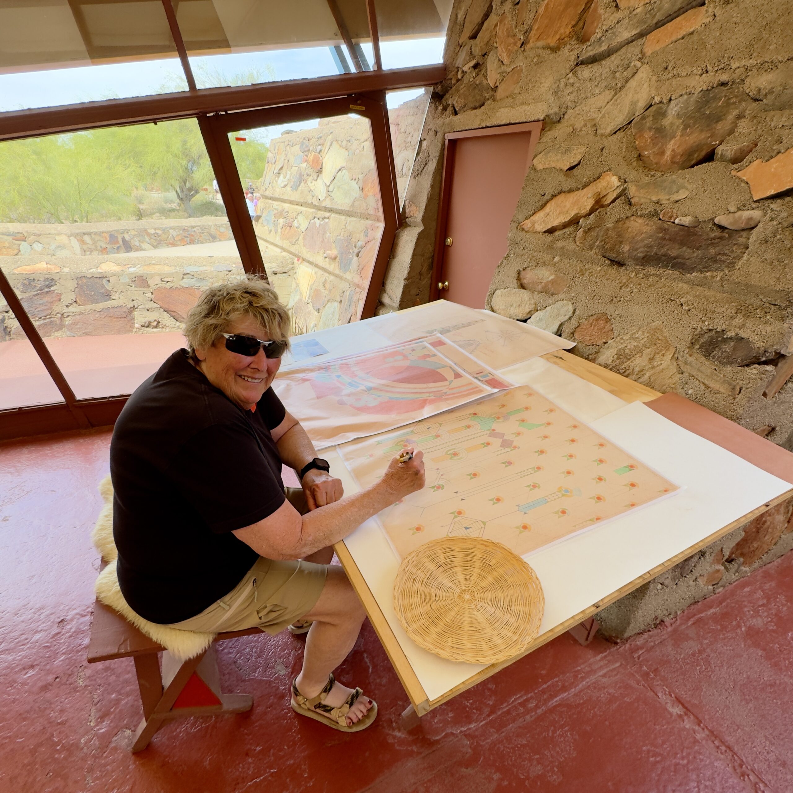 Frank Lloyd Wright is my favorite architect and it was really special to sit at his drafting table and image him sitting there creating. Exploring Taliesin with Kim and Ernie who love his designs made it an incredible adventure.