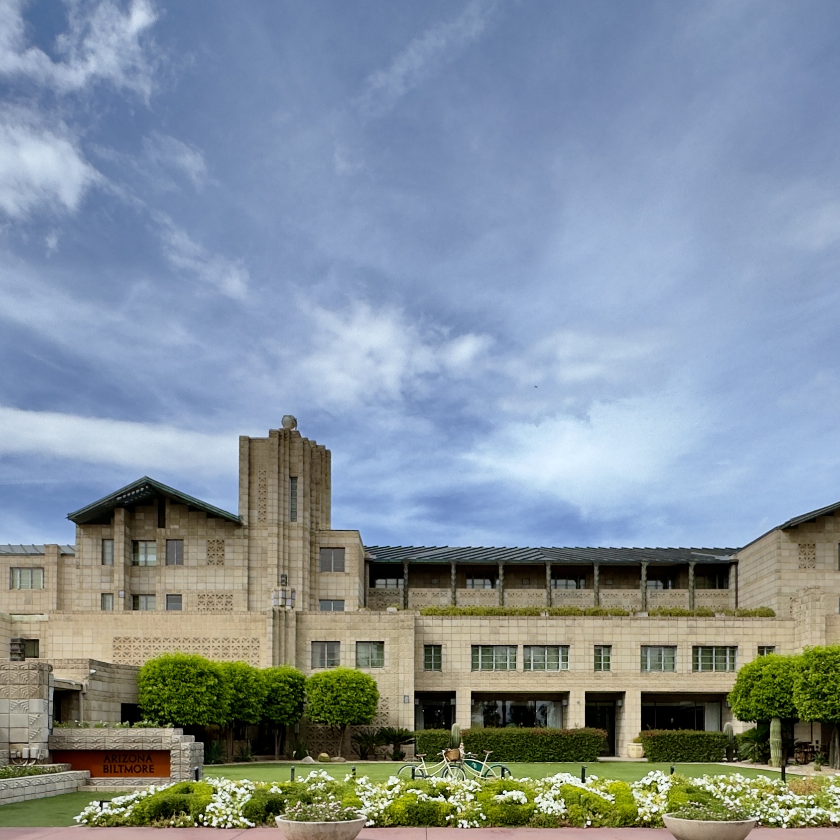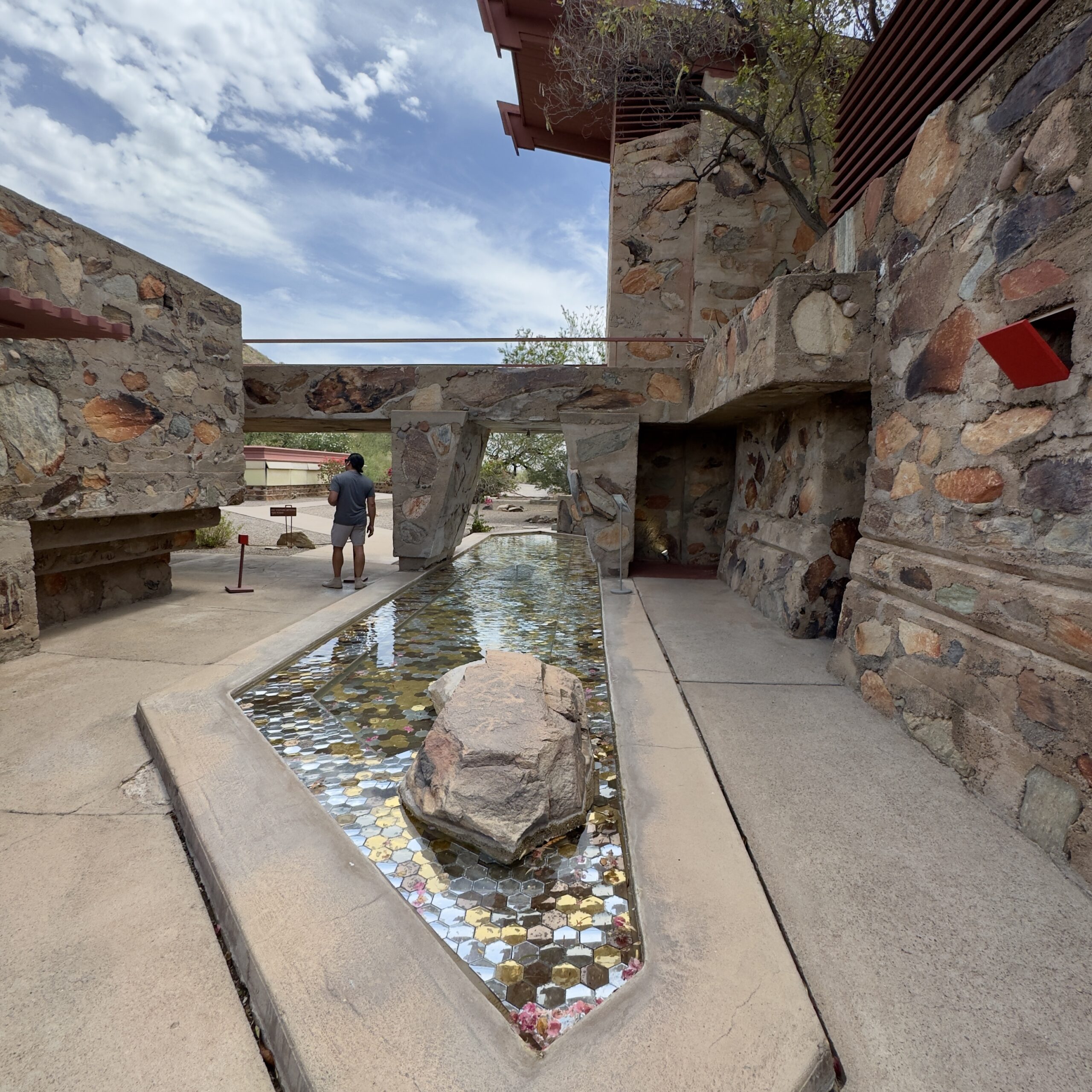 After exploring Taliesin West we headed to the Arizona Biltmore for an adult beverage and a snack. The Biltmore is a Frank Lloyd inspired resort. As we walked the grounds we encountered many of the design principal that are uniquely his.