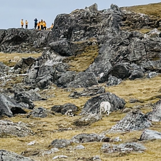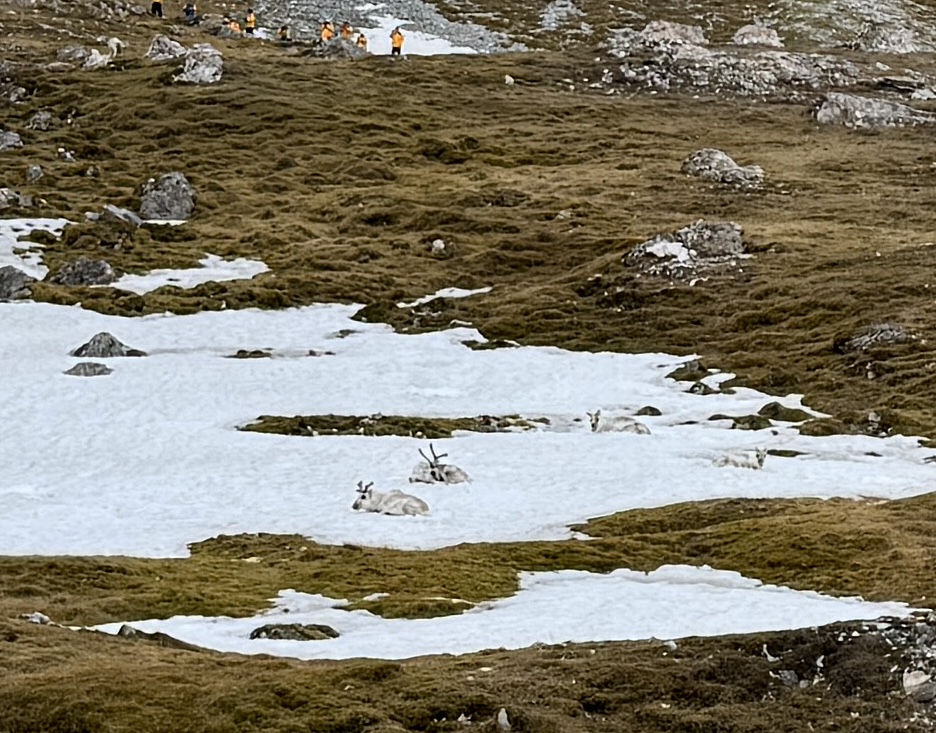 We encountered a group of reindeer on the cliff side who were happy to just chill while we took lots of pictures. Far too soon it was time to head back to the Zodiac via the snow stairs that the expedition team created. This is our last adventure for this as tomorrow we head back to Helsinki.