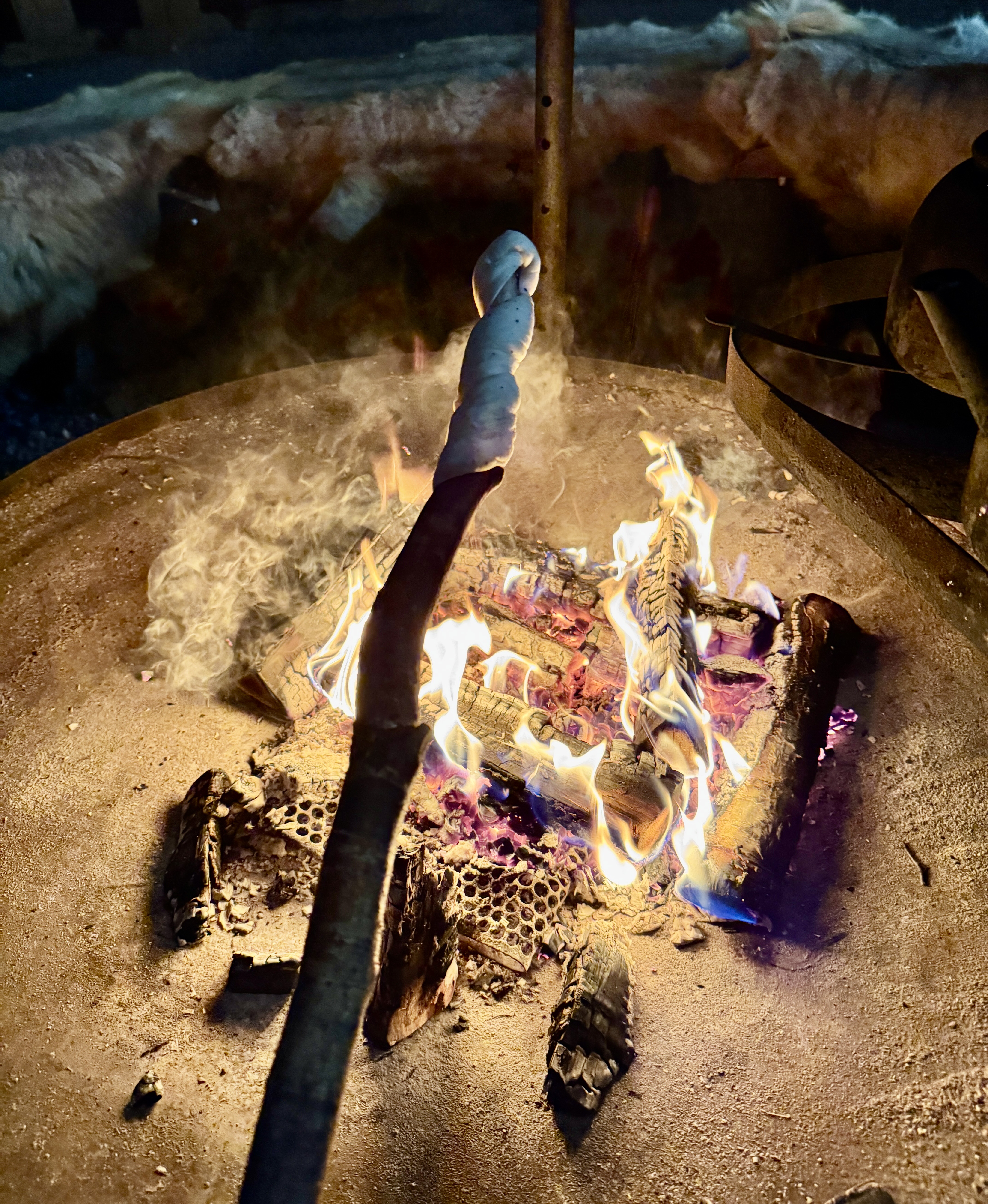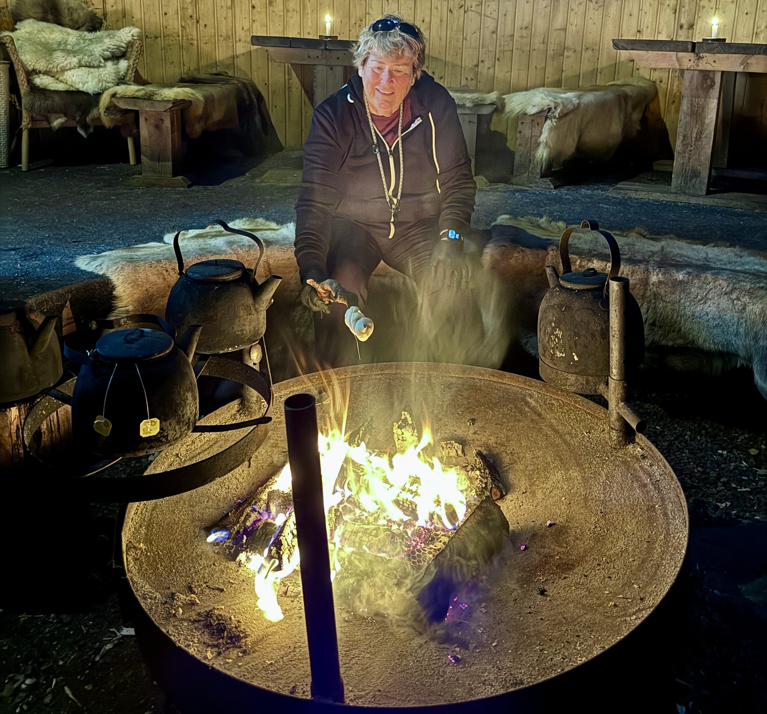 After feeding the reindeer it was time to feed me. We went inside a traditional Finland hut and cooked their traditional sweat bread Snobrød on a stick. Just add a bit of jam and this was a very yummy treat.
