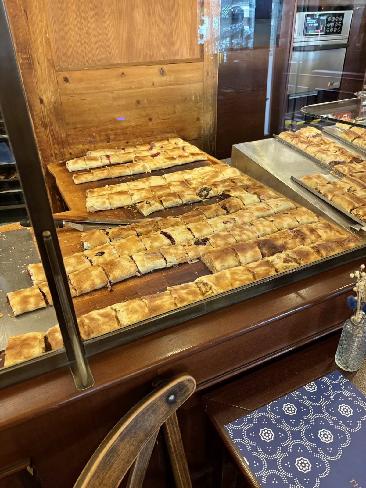 After our long walk in the park we were a bit hungry so we headed to the oldest strudel cafe in Budapest. The strudel was so yummy and watching them make it was entertains The chef twirled the dough to stretch it. Having worked with strudel dough this is not easy since it is so fragile. We really enjoyed the show!!