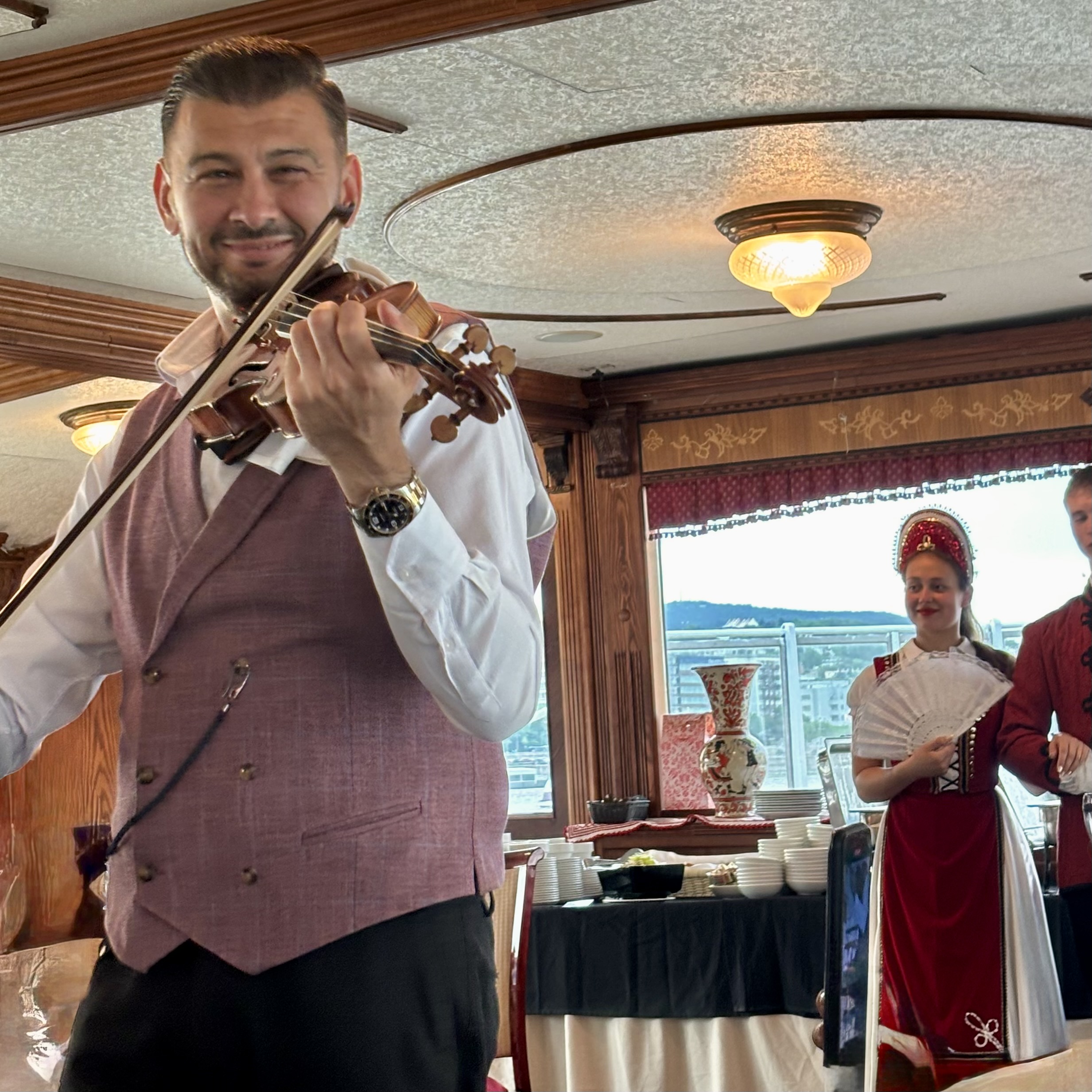 As we sailed down the Danube we enjoyed Hungarian food and were entertained by a great band that played Hungarian folk music. As we set sail they played the Blue Danube waltz. On our walk back to the hotel we were treated to the lights of the city. What a perfect way to end our last night in Budapest.