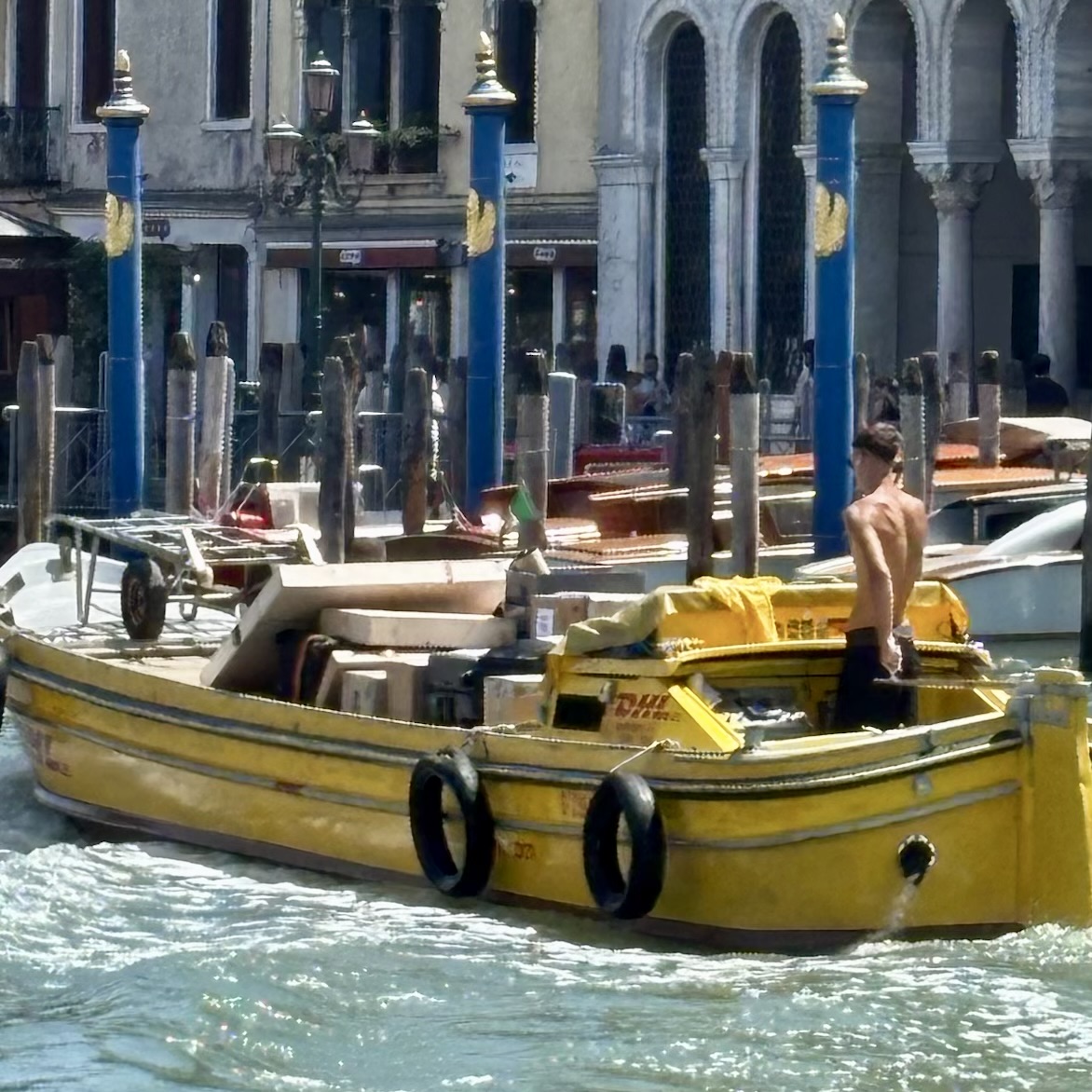 Everything get delivered by boat including DHL!!! I kept expecting to see an Amazon boat but did not…drat!