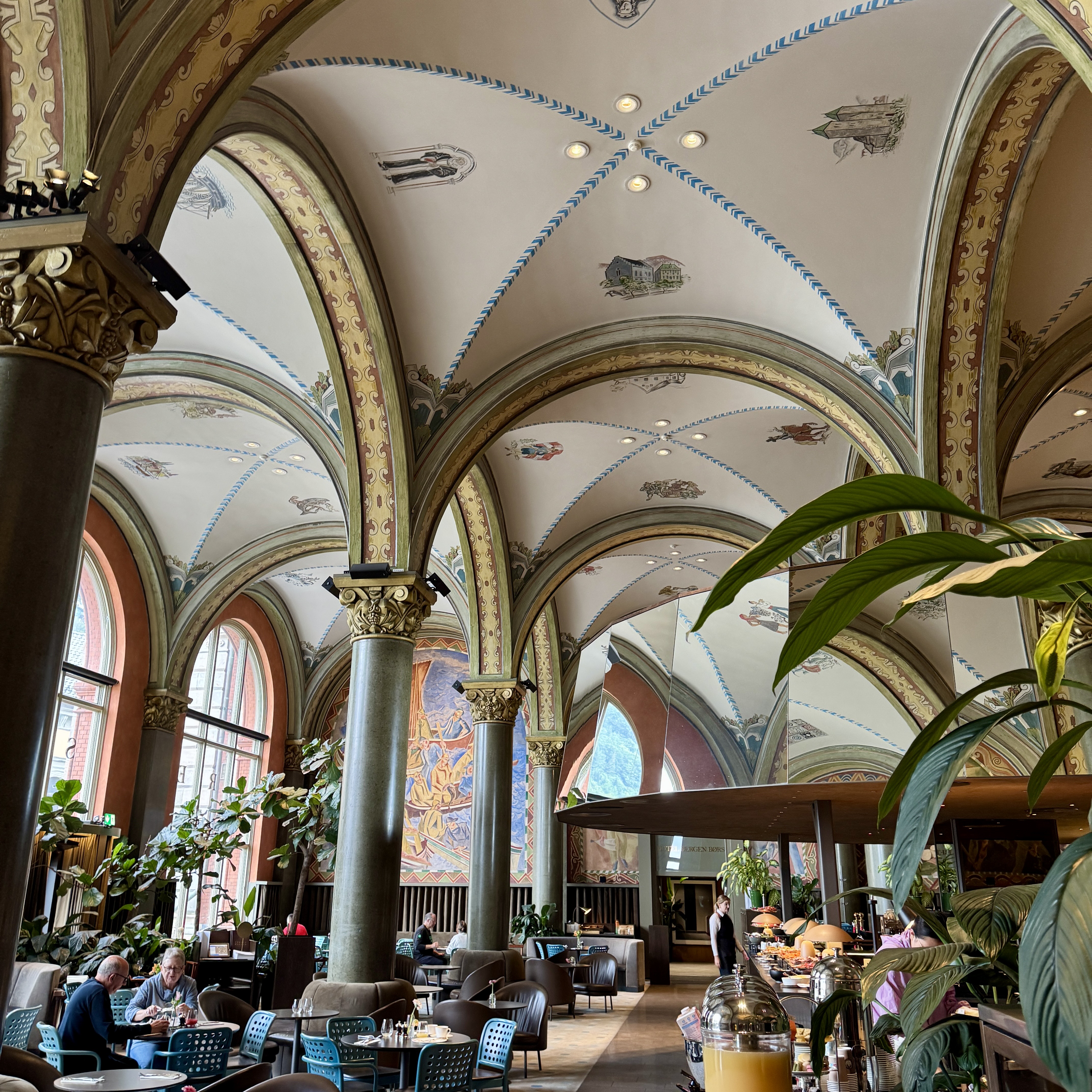 We are staying at the incredible Bergen Boris hotel located in the city center. It was the stock exchange before being converted and retains the spectacular murals and woodwork from its former days!!