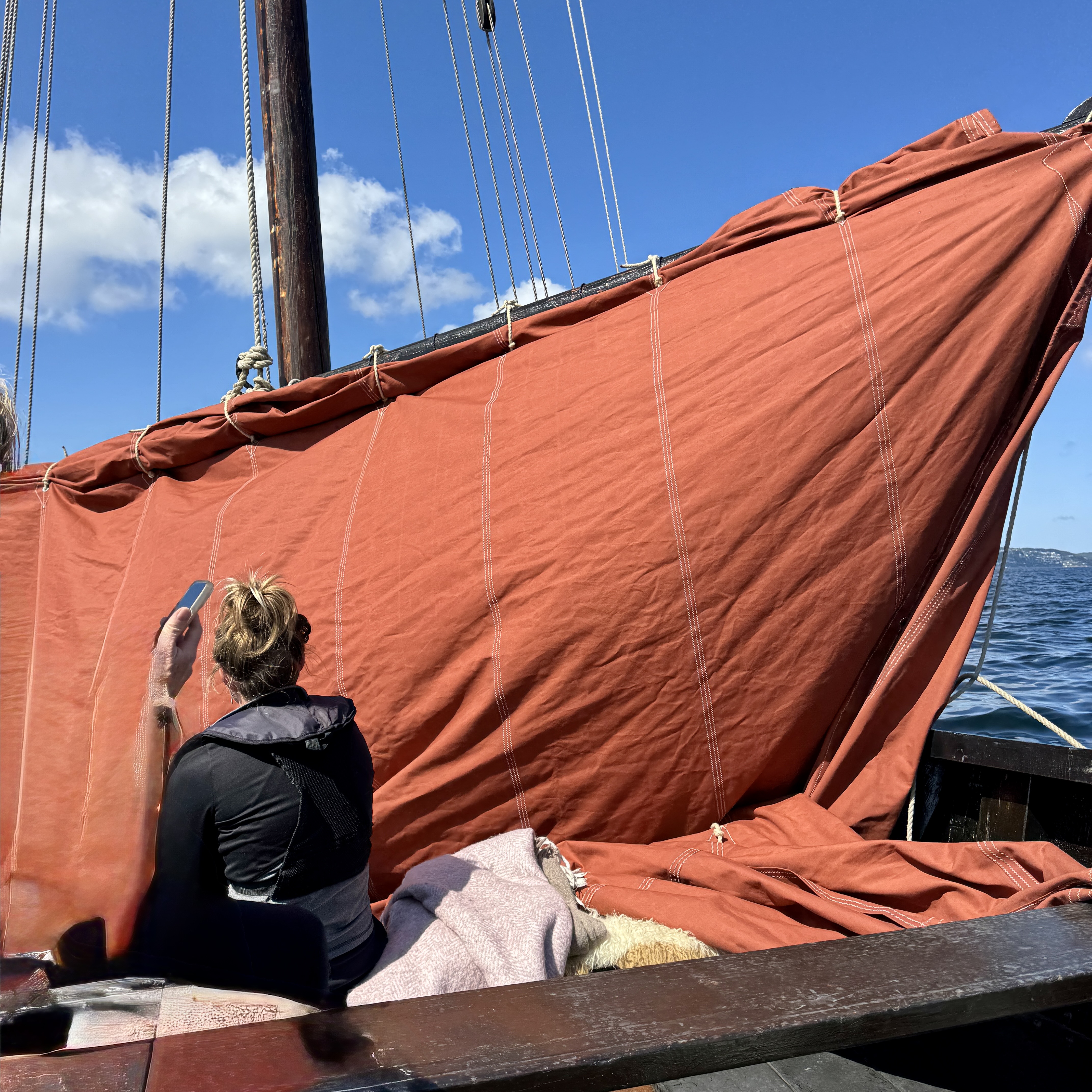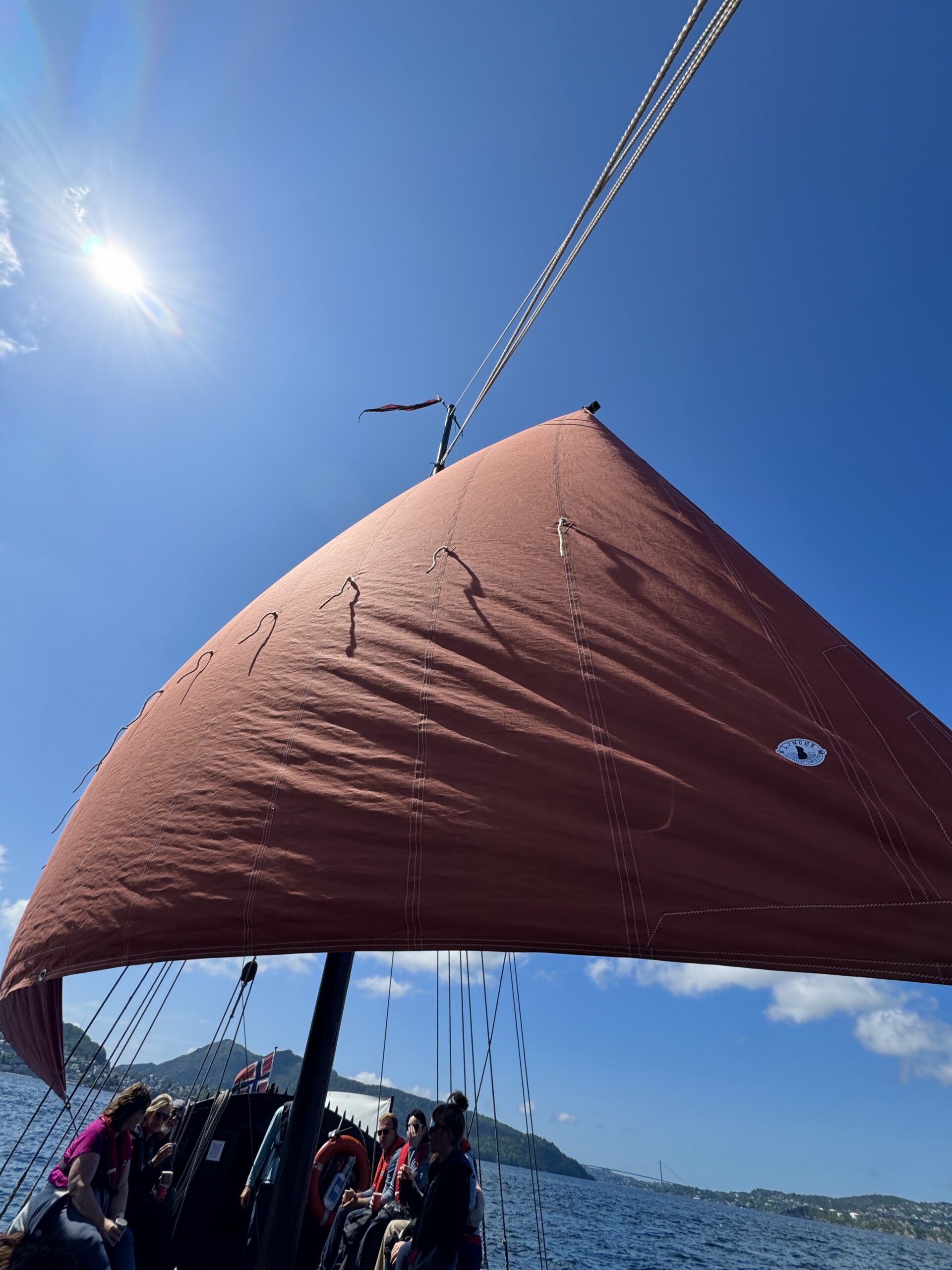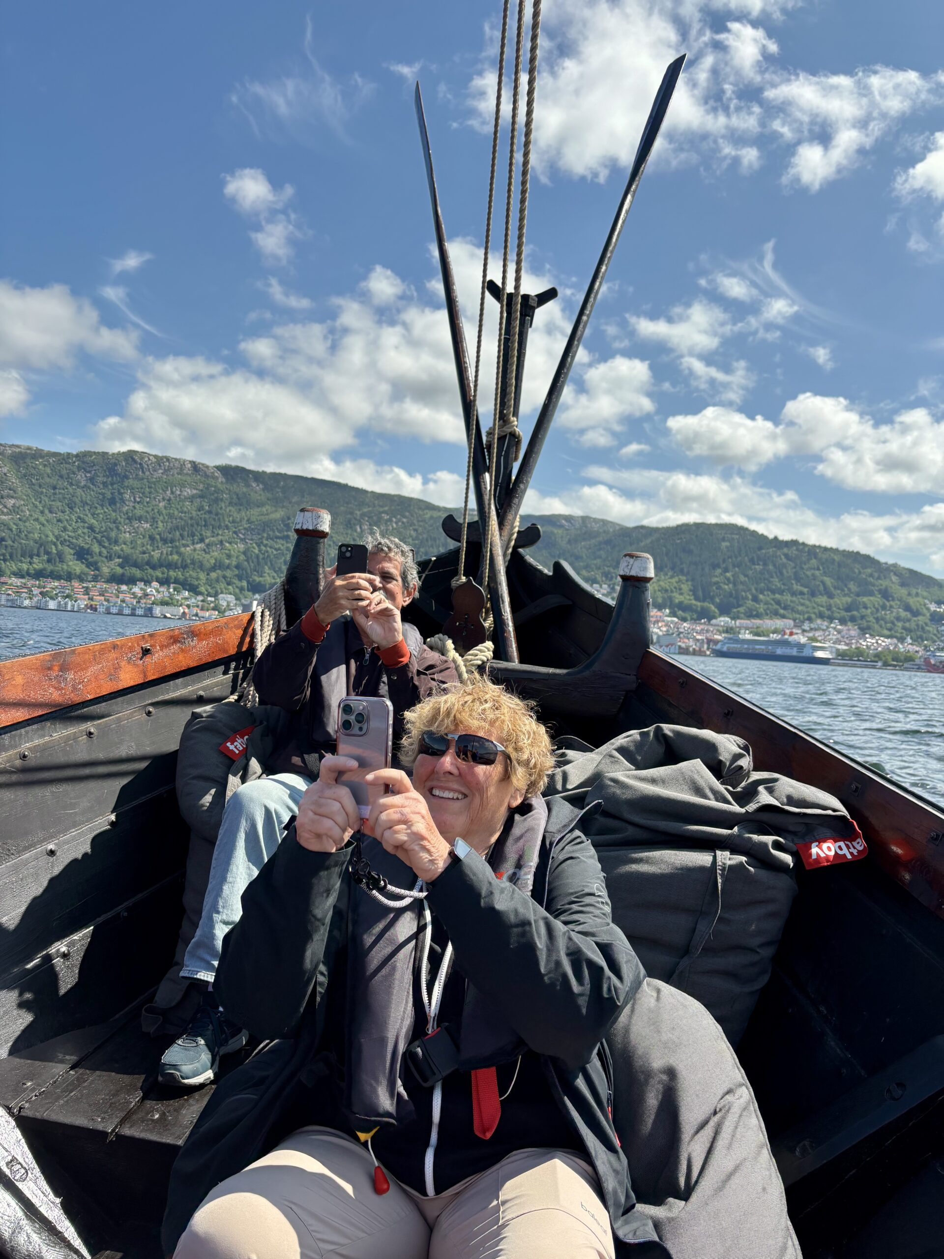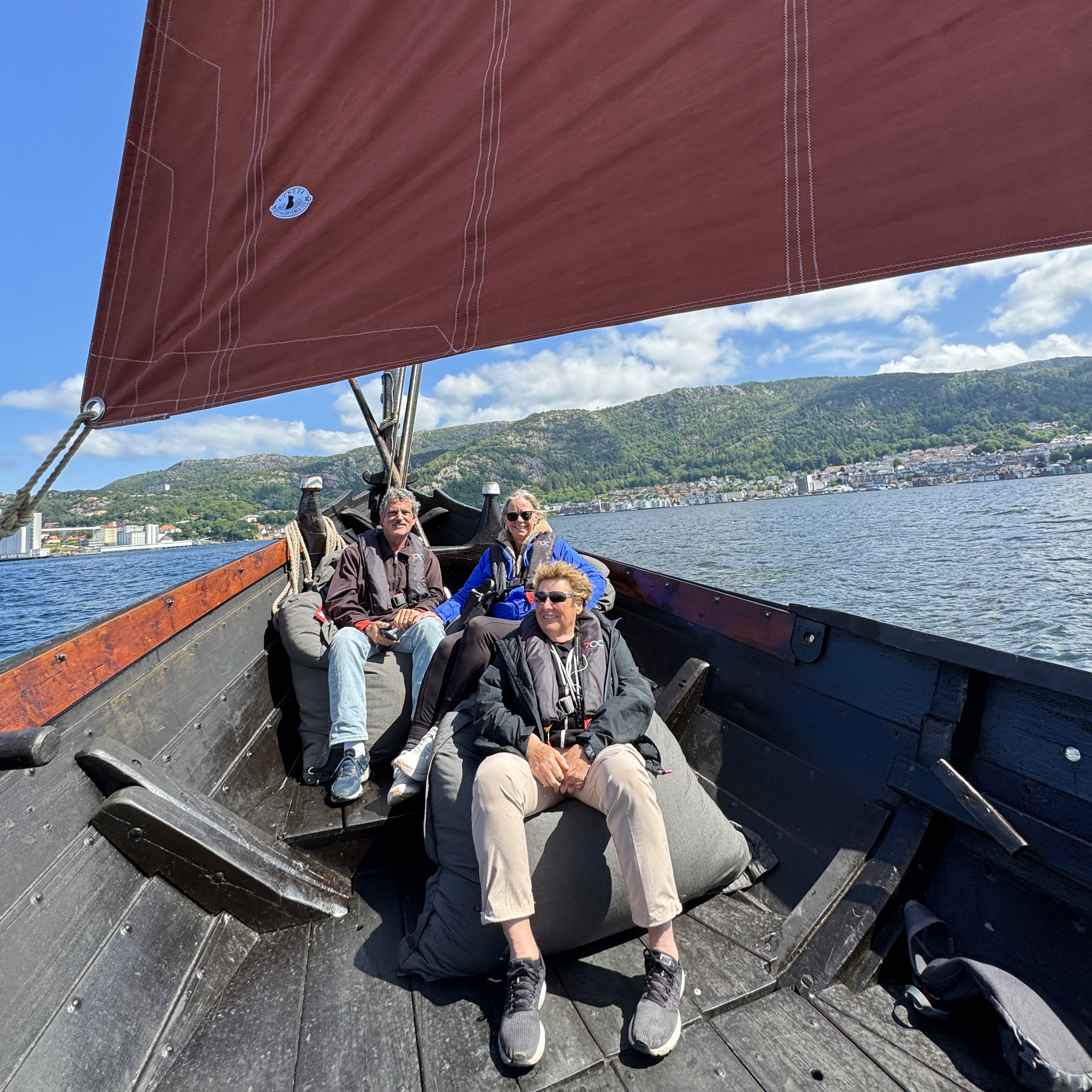 Our afternoon adventure was sailing on a Viking sailing ship!! Getting into the ship was a challenge as we had to climb down the tires on the side of the dock but we did it and it was so worth it. Once we were in open water the sails were raised and we were in the front of the ship in bean bag chairs enjoying every minute of a perfect sunny day. Even though I had sunscreen on my face got really burned a small price to pay for an incredible adventure!!!