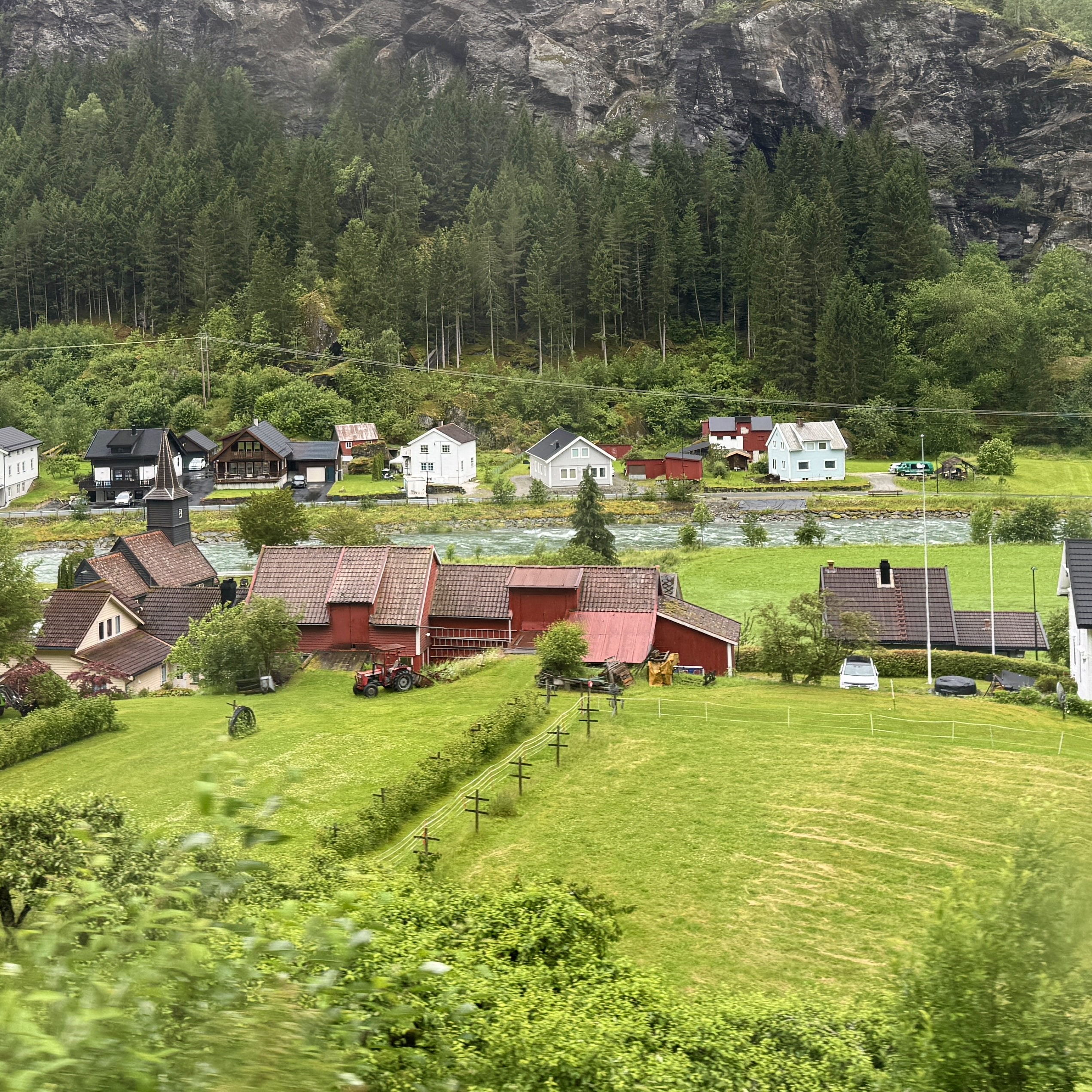 We left Oslo in the early morning to head to Flåm. The first train took us through the beautiful landscape of Norway with it rolling hills and small villages.