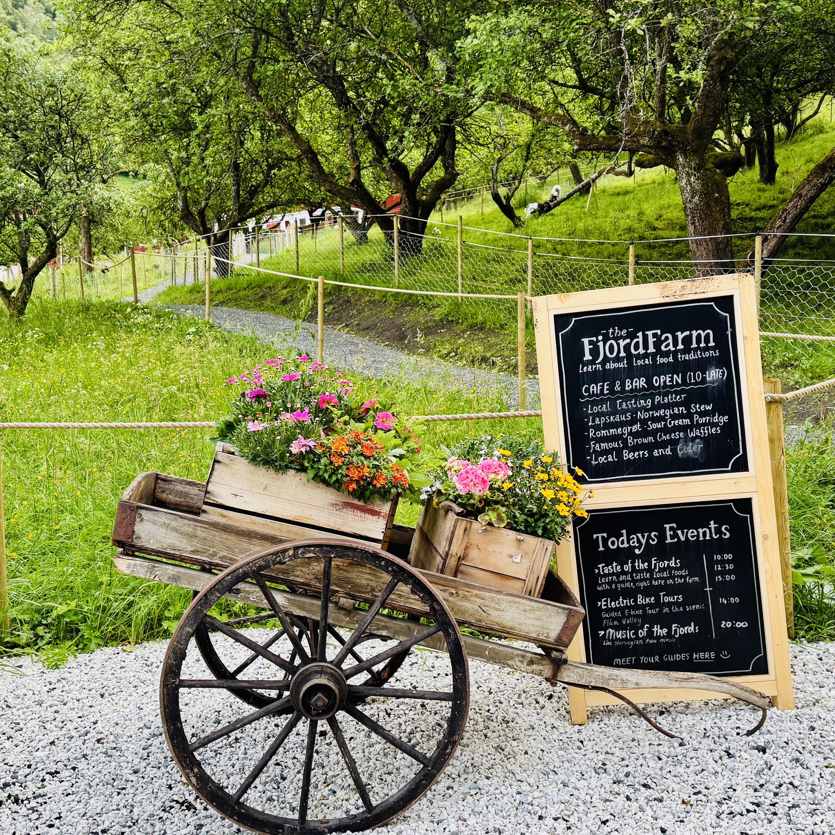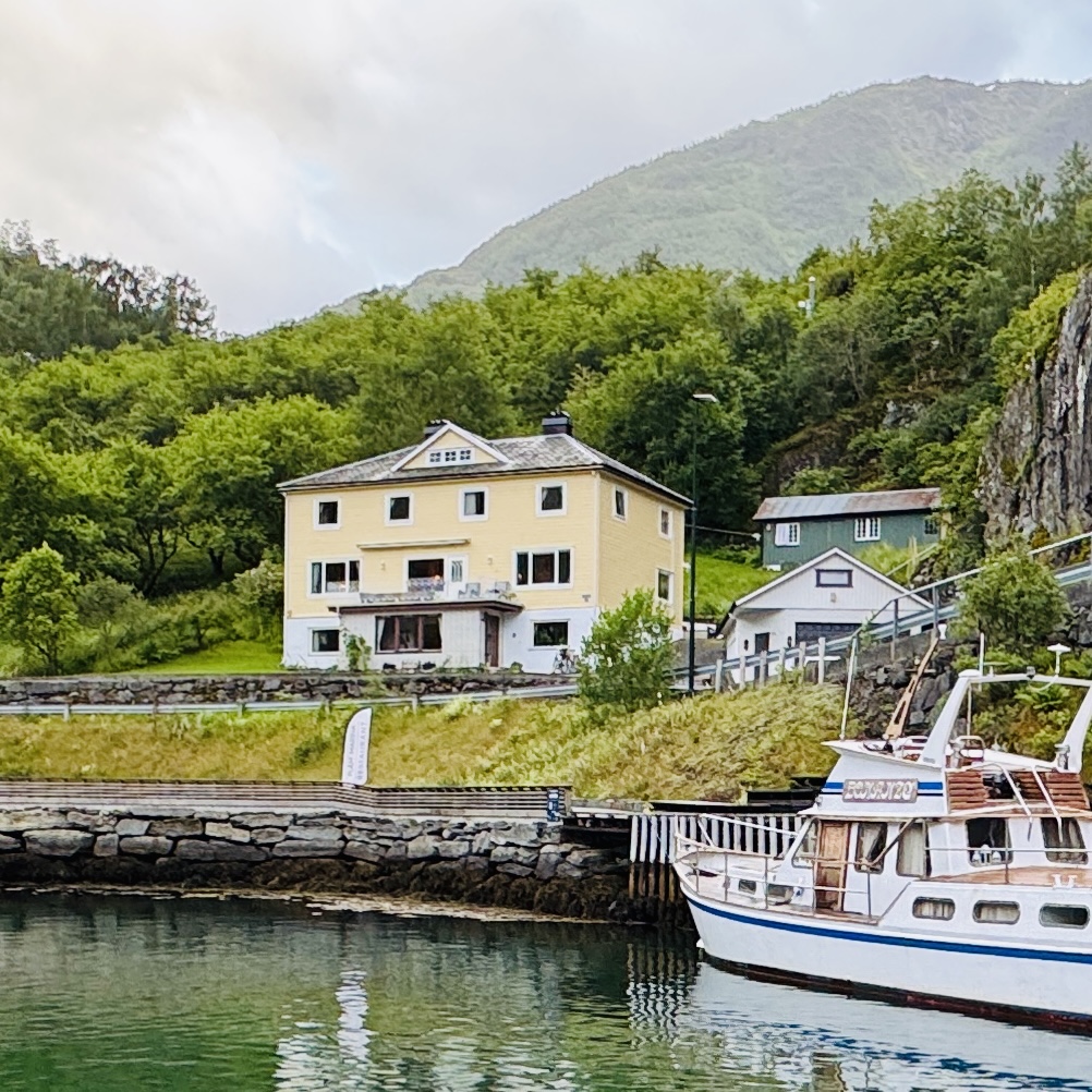 As we arrived on Flåm the spectacular Nærøyfjord, listed as a UNESCO World Heritage Site came into view and it’s spectacular. We are staying in a Yellow guest house on a hill that has an incredible view of the Fjord. The feature picture is from my window!!!