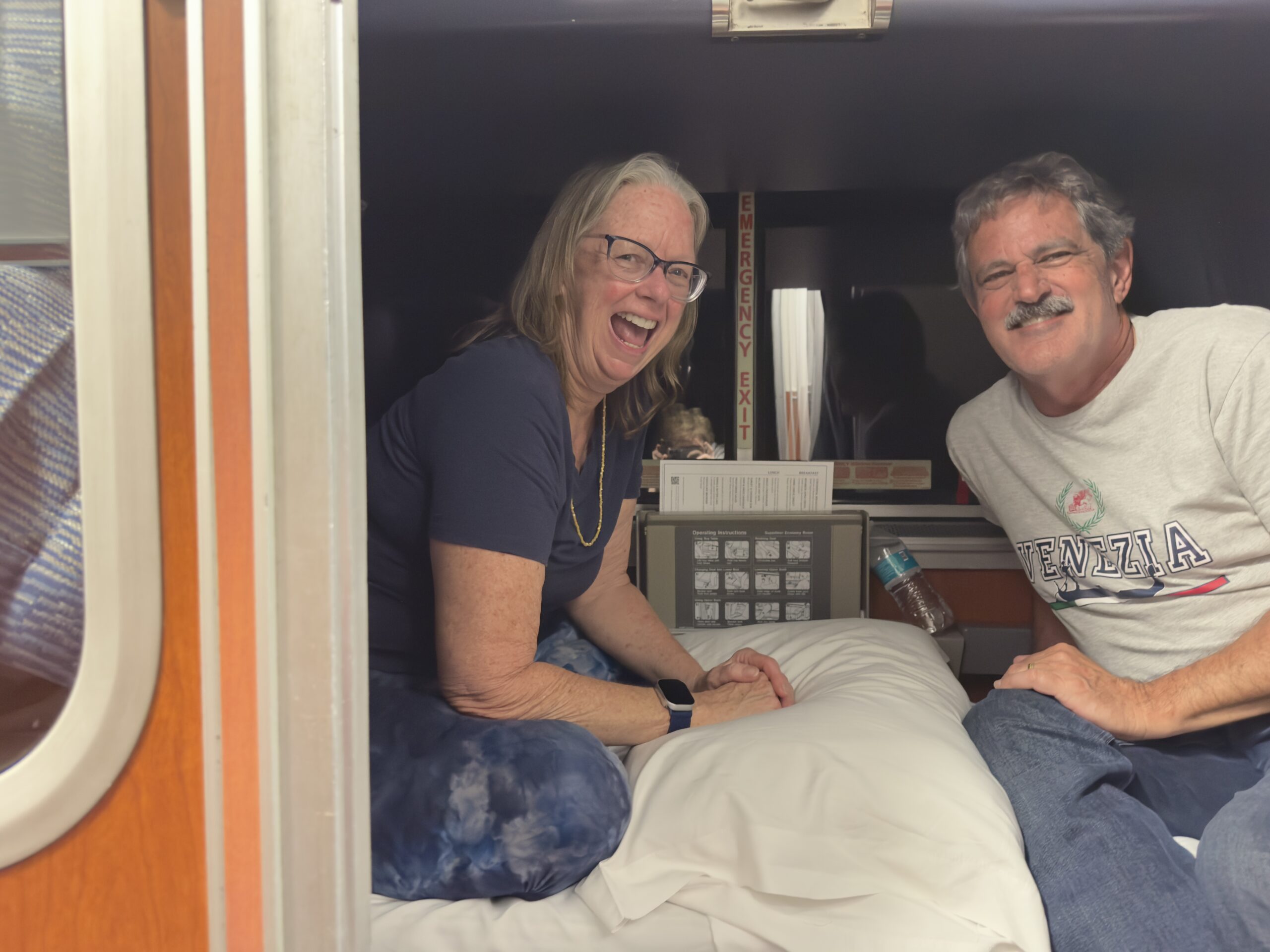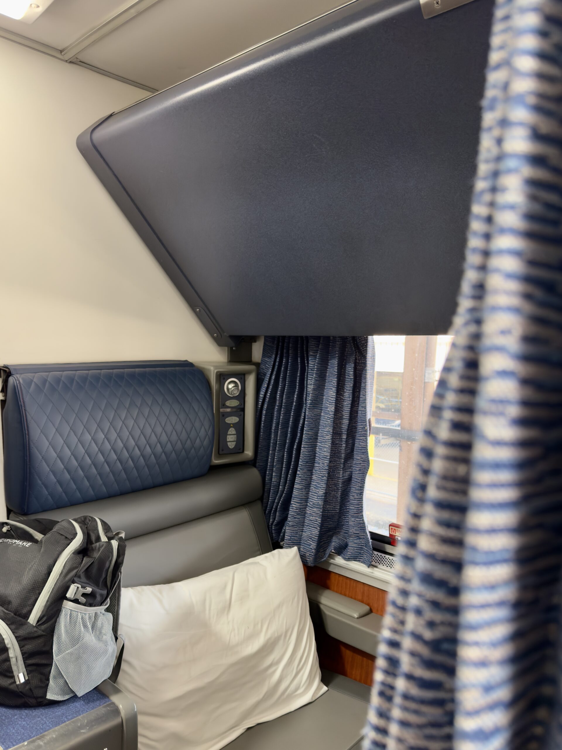 On Wednesday afternoon we left New Orleans by train headed to Chicago a bit over 900 miles on an Amtrak super liner train. What that means it’s a double decker train with roomettes that provide a place to sit and then converts into bunk for sleeping. The space is about the size of a business class seat but is actually really comfy for sleeping.
