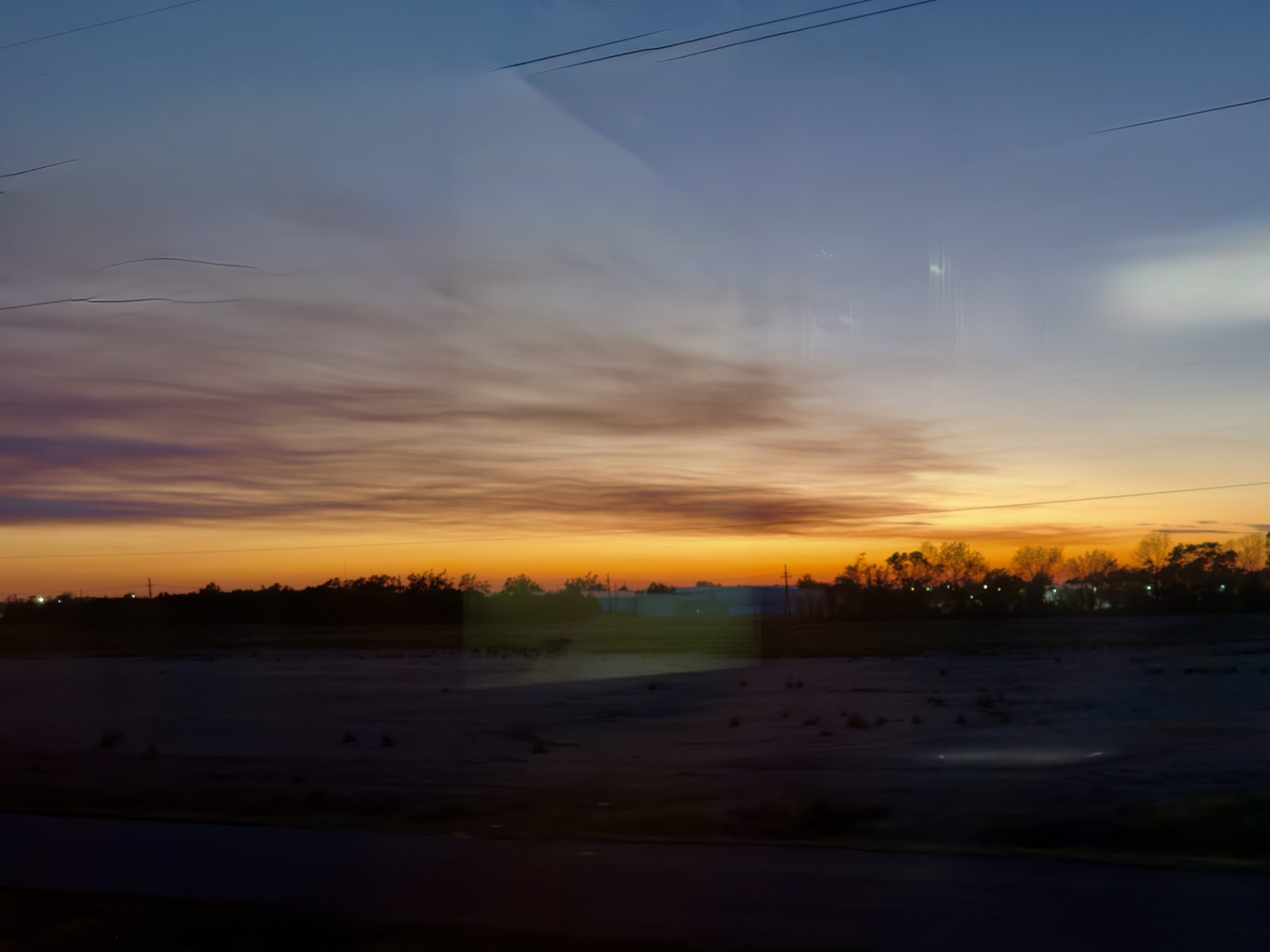 We sat in the observation car to experience the sunset in rural Louisiana. The colors were spectacular!!!! Taking a picture was a bit hard due to the speed and shaking of the train!!! When we were at dinner we encountered turbulence that cause the food to go flying…lol!!!!