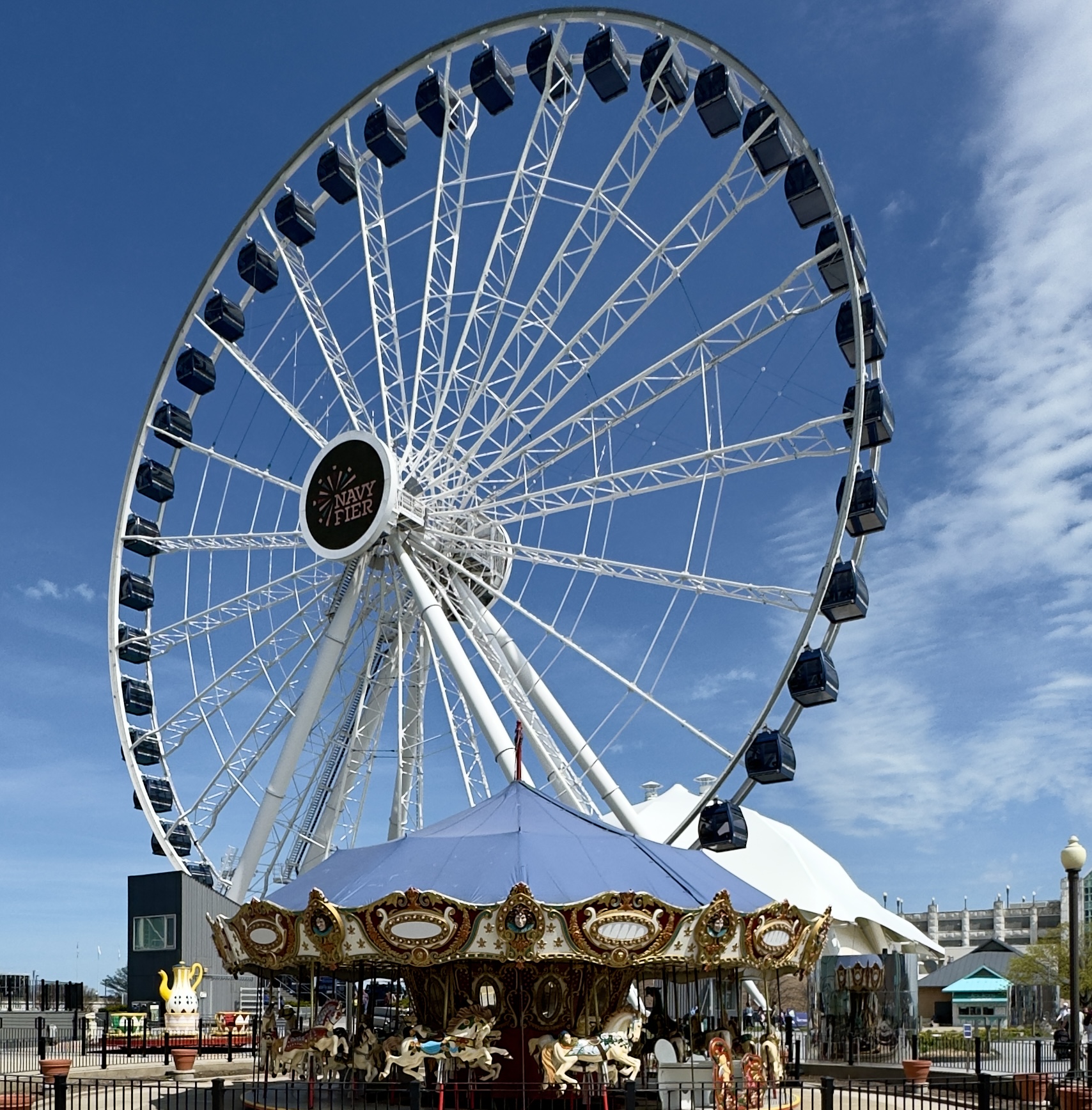 About 9:00am we arrived in Chicago and headed to our hotel. I have not visited Chicago since I left there 35 years ago so it’s going to be an adventurer to see how it has changed. After settling in we headed out for pizza! Chicago is known for its pizza and we are determined to try as many of the top 5 that we can!!! After our yummy pizza break we headed out on the Riverwalk towards Navy Pier that provides awesome views of the Chicago skyline and we happened upon the world largest roof top bar and of course we had to check it out.