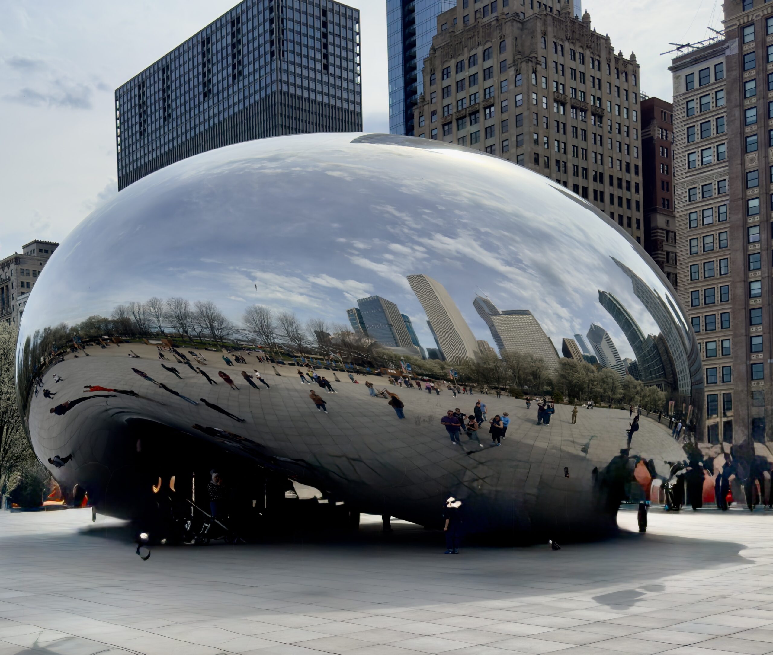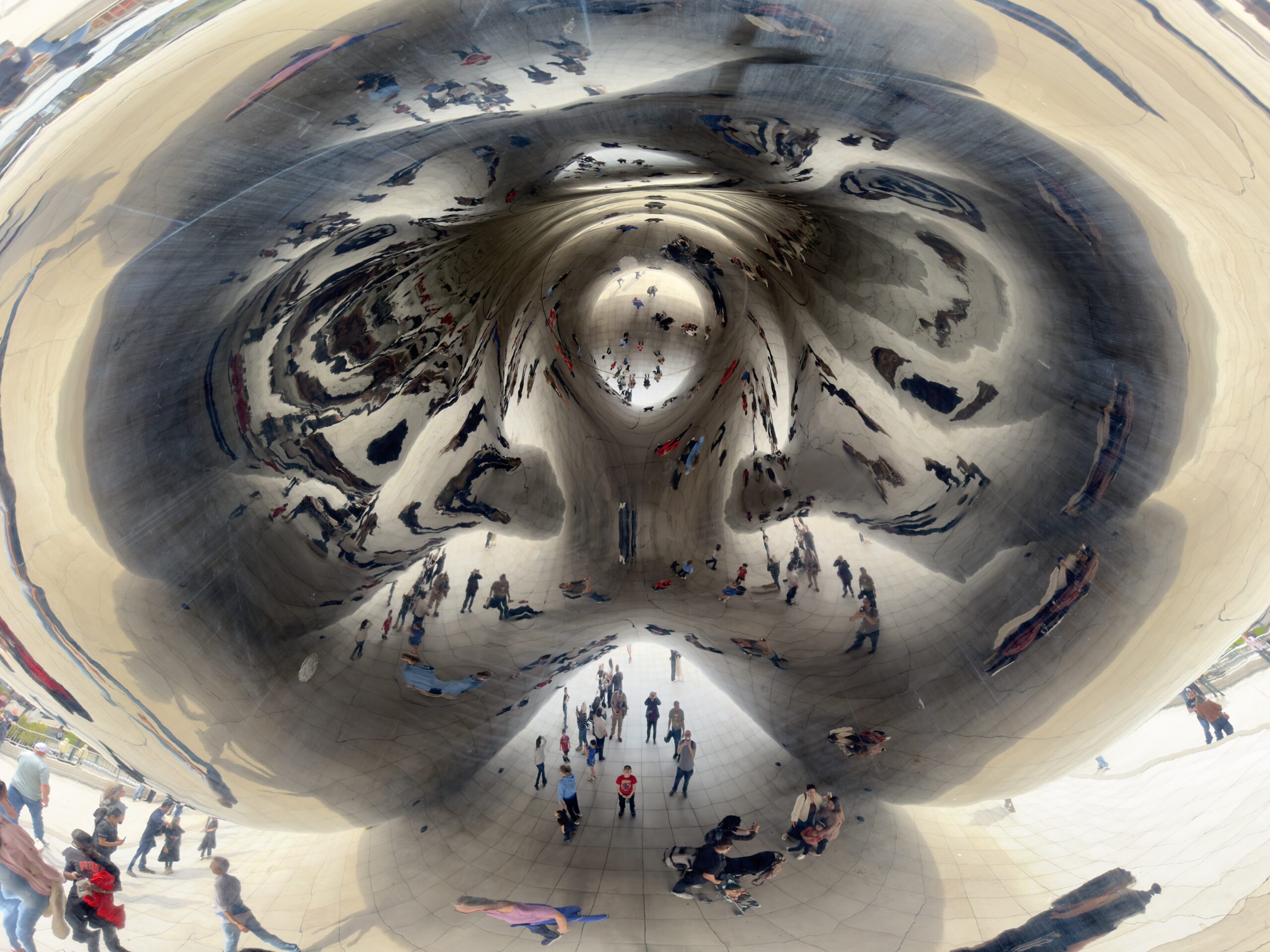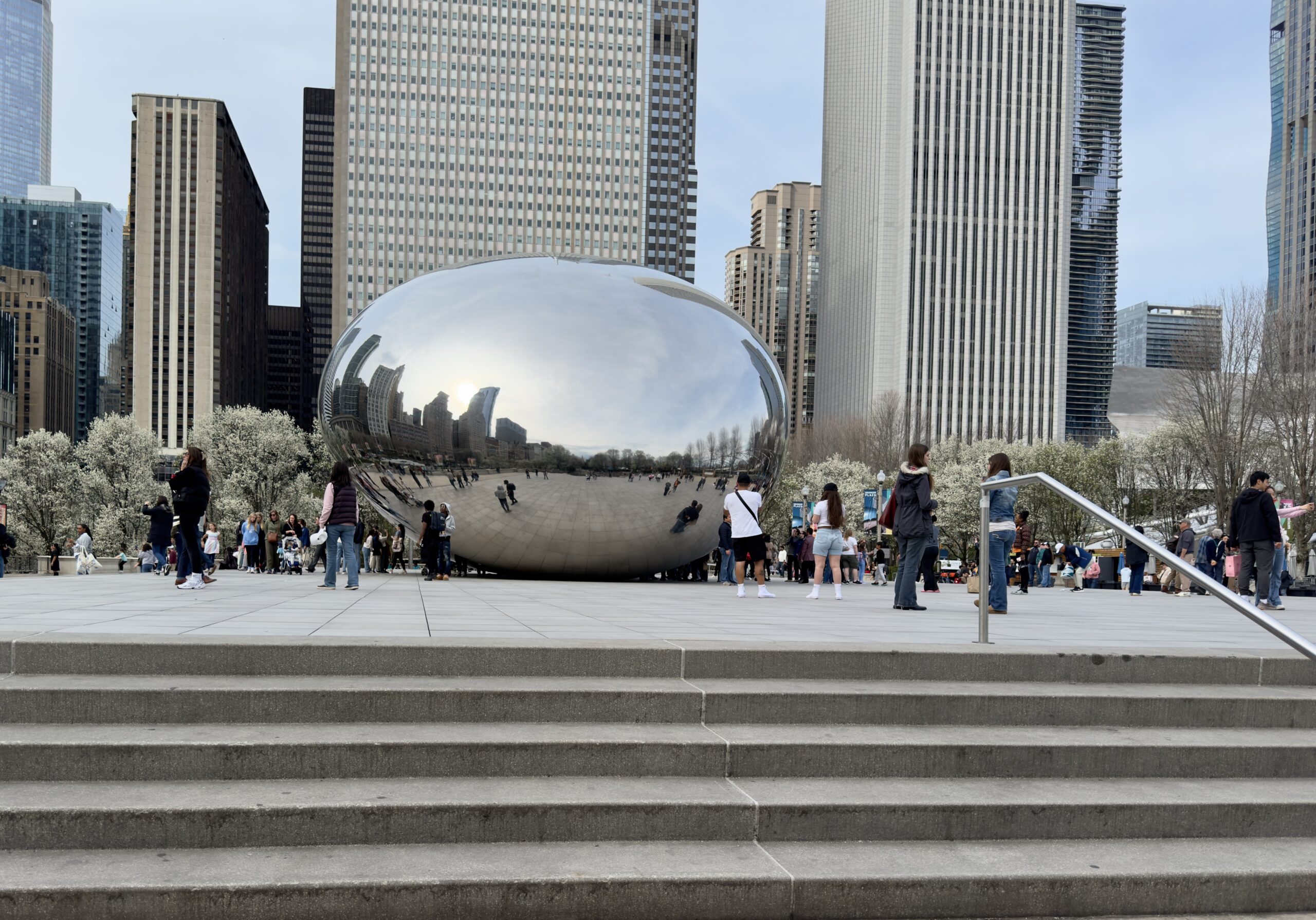 After chilling and enjoying the view of Chicago from the rooftop we walked along the river to Millennium Park home to the iconic Cloud Gate statue (aka “The Bean”)! The Bean’s reflective surface was inspired by liquid mercury. This shiny exterior reflects the people moving around the park, the lights of Michigan Avenue, and the surrounding skyline. The one picture that I took is from the inside and to me it looks like multiple faces. The sunrise picture was take early morning on Friday just after the rain stopped.