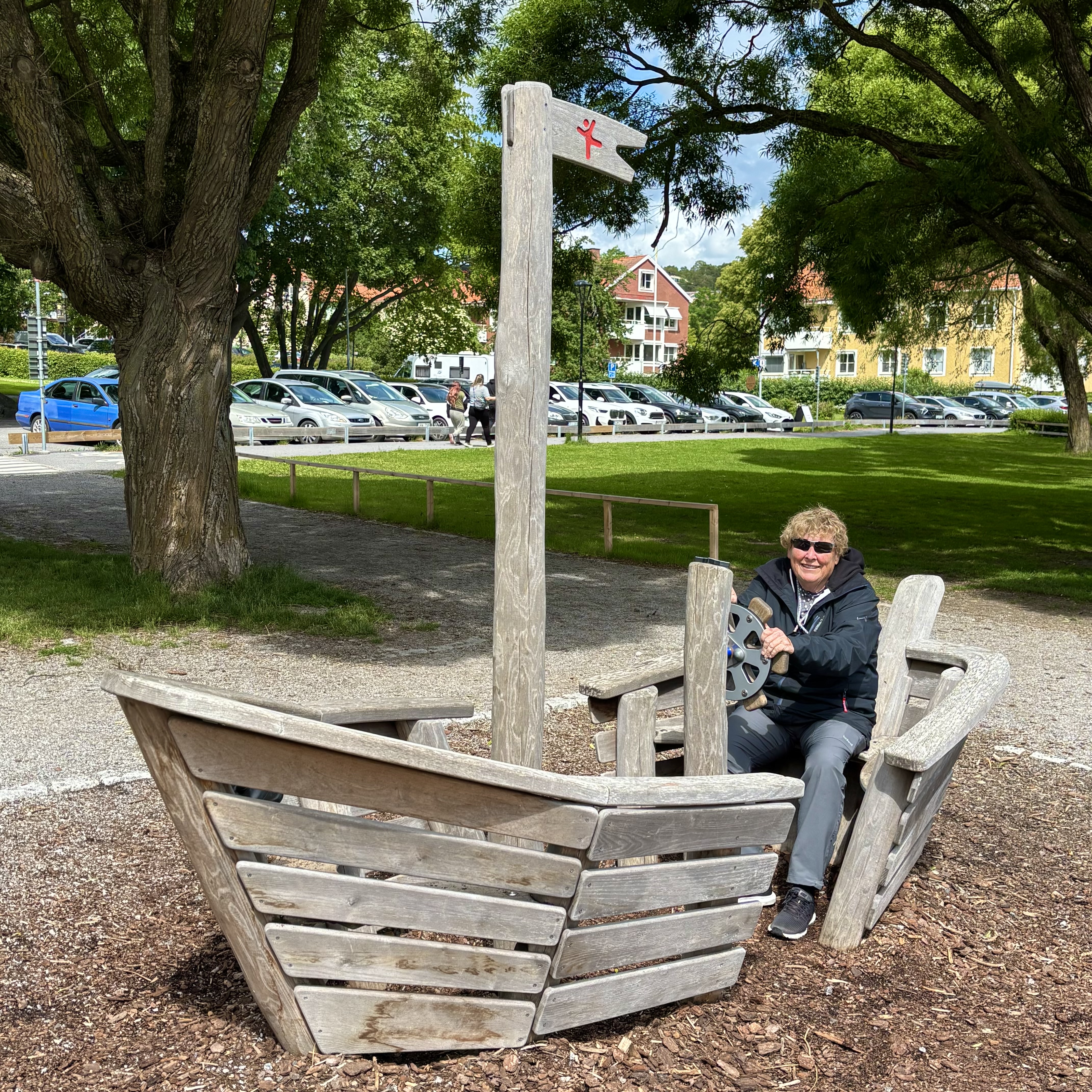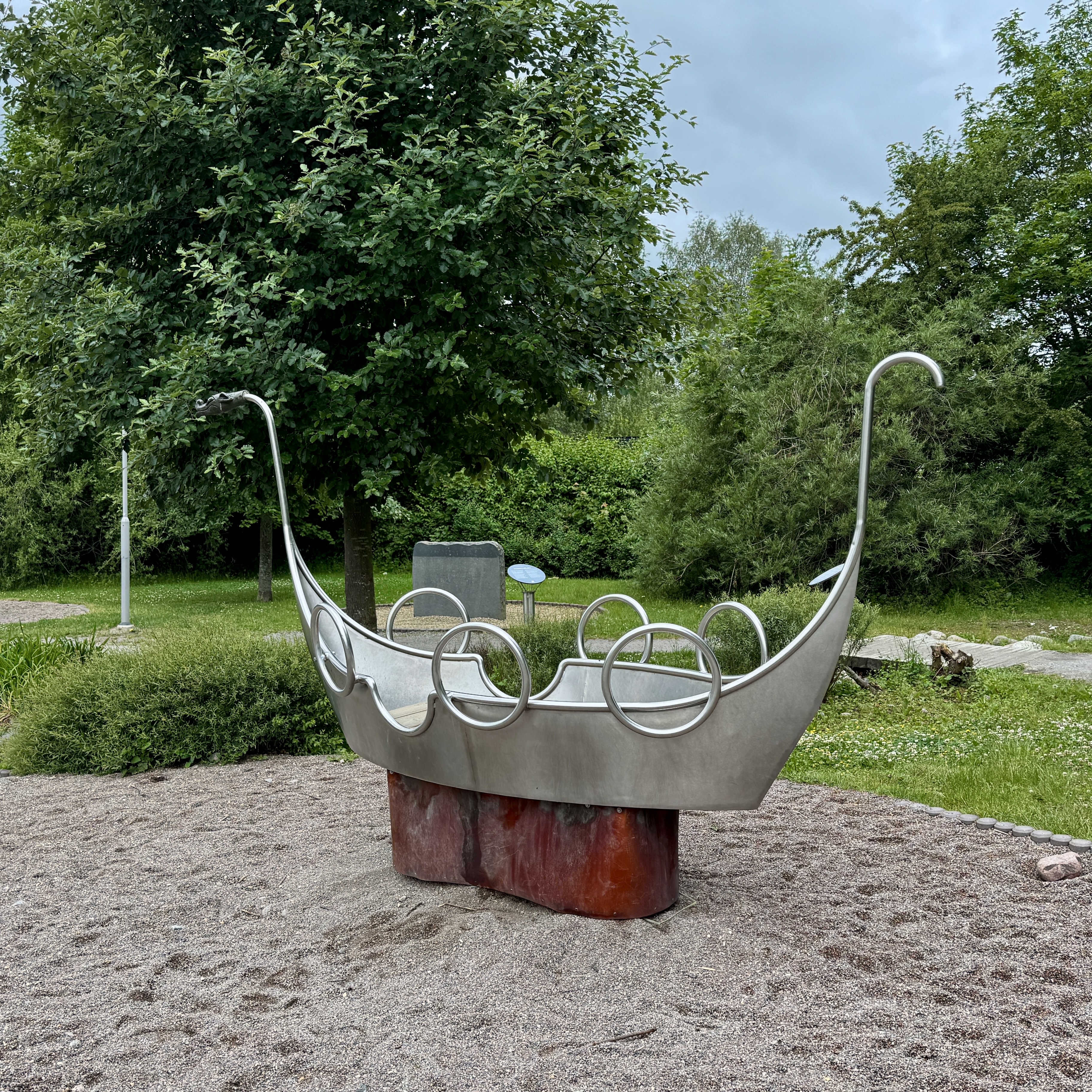 After a drive of about 30 minutes we were at our first stop where Runes from the Viking era were discovered. Runes are a way of telling the story of a deceased person to honor them. Our guide was very knowledgeable about how to interpret them (ok, way too much detail)!! I got a bit distracted with the metal Viking ship in the playground….oops!